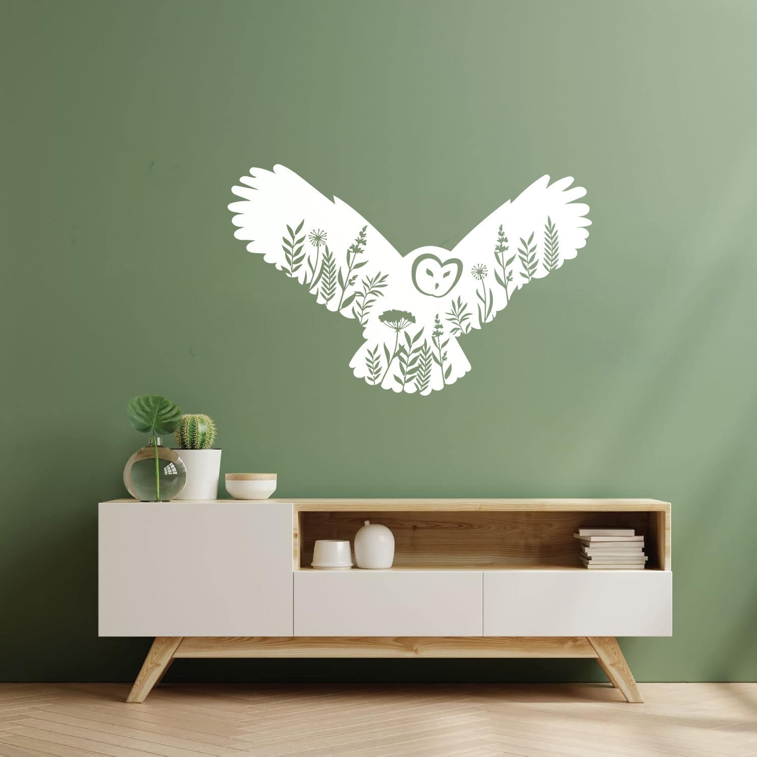 Engraving Stickers Owl Night Bird Flowers Natural Self Adhesive